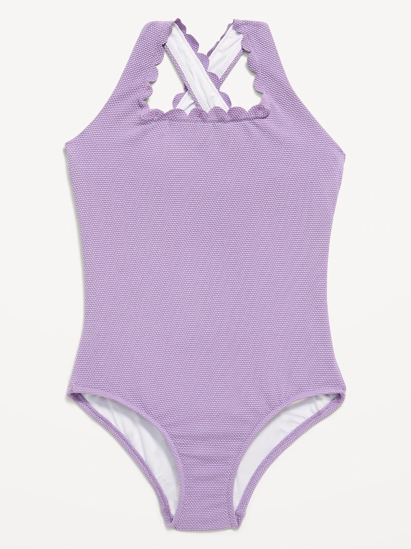 Textured Scallop Cross-Back One-Piece Swimsuit for Girls