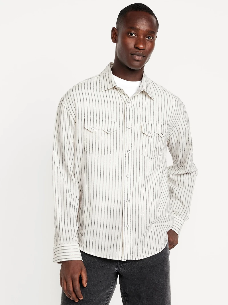 Textured-Stripe Western Pocket Shirt