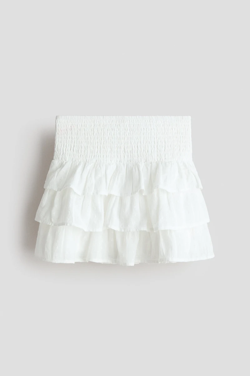 Tiered skirt in soft woven cotton. Wide, smocked waistband. Lined.