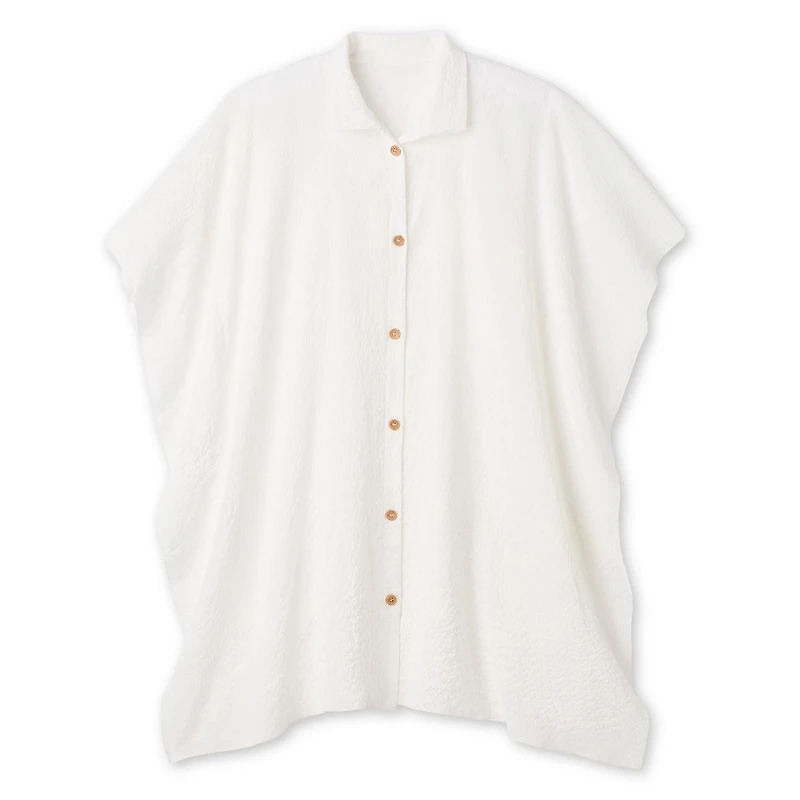 Time and Tru women’s button-up ruana offers an easy, elevated layer you can slip on with anything. Made from a soft fabric, it features a relaxed drape with a spread collar, a full-button closure, and an asymmetrical hem that adds trendy shape and movement. This pull-on style is effortless over tanks, tees, dresses, or swimwear. It’s an instant outfit finisher for days when you want polished comfort without trying too hard.