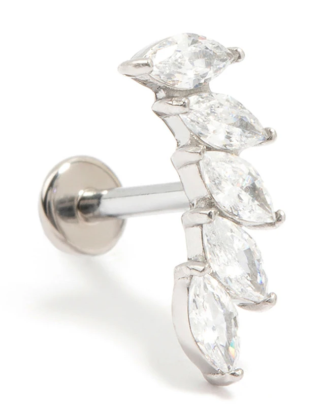 Titanium Cubic Zirconia Stacked Leaves Flat Back