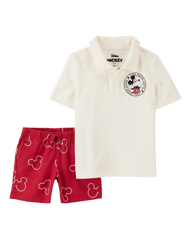 Toddler 2-Piece Mickey Mouse Polo Shirt & Short Set - Heather/Red