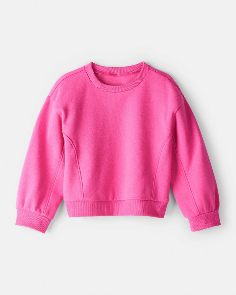 This dark pink crew is a go-to for cooler mornings, messy afternoons and everything in between. With a relaxed fit, pull-over ease and no fluff or frills, it’s all style and zero fuss. The ribbed cuffs and hem keep sleeves in place for snack time, story time or chaos time. It’s sweatshirt season-might as well look good in it.