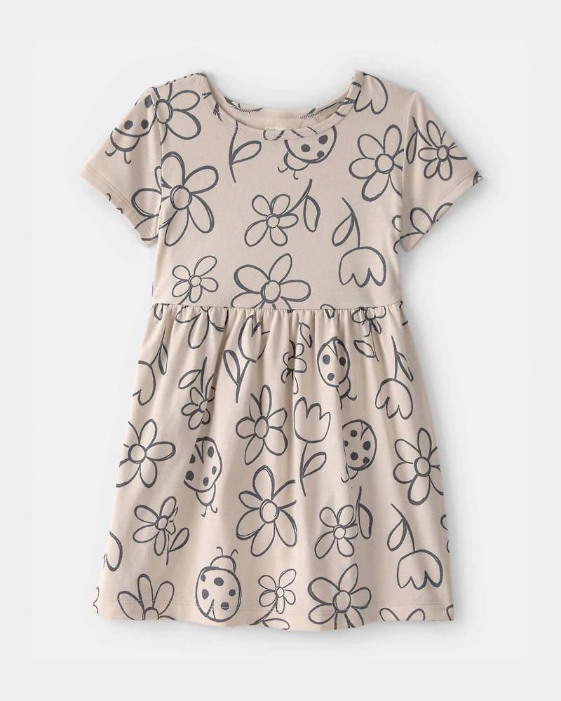 Get ready for everyday adventures with the Toddler Girl Floral Ladybug Short-Sleeve Dress - Brown. This delightful dress features a playful ladybug and floral print that sparks joy in every twirl. Made from soft cotton, it ensures all-day comfort for your little one, whether at the park or a family gathering. The easy pull-on style means less fuss and more fun for busy parents. Plus, the durable fabric stands up to the rigors of play while keeping its charming look wash after wash. Dress her in a style that’s as vibrant as her spirit.
