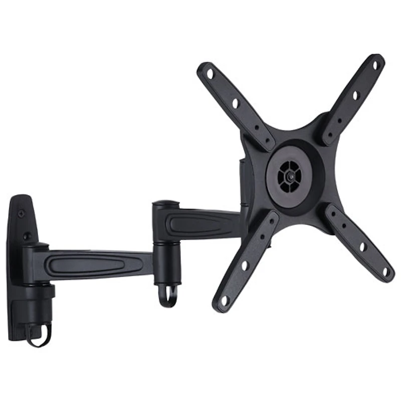 Full motion wall mount is designed to fit 17-inch to 37-inch flat panel TVs, weighing up to 19.95kg (44lb.) Articulated arm allows you to adjust the mount up to 417mm from the wall Universal mounting pattern up to VESA 200mm x 200mm Tilts up from -15 to +15-degree, rolls 360-degree left or right, and swivels up to 180-degree with locking mechanism to offer a custom viewing experience Made of cold steel to provide strength and durability External integrated cable management keeps cords neatly organized Dimensions: Width: 23.88cm (9.4''); height: 9.65cm (3.8''); depth: 23.11cm (9.1'')