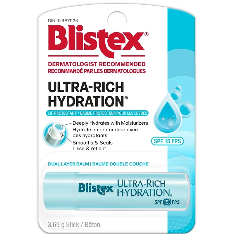 Blistex Ultra-Rich Hydration is the dual-layer balm with two advanced formulas developed to work together for healthier, conditioned lips. SPF 15.