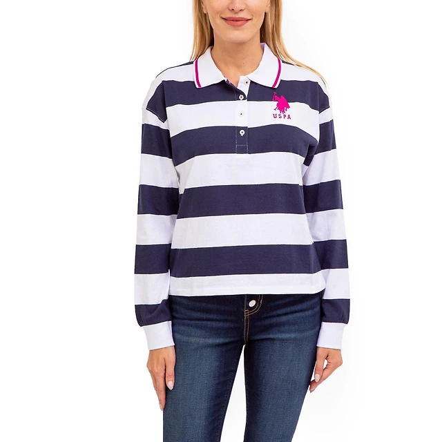 Women's Polo Assn. Pink Striped Popover Blouse Size Small