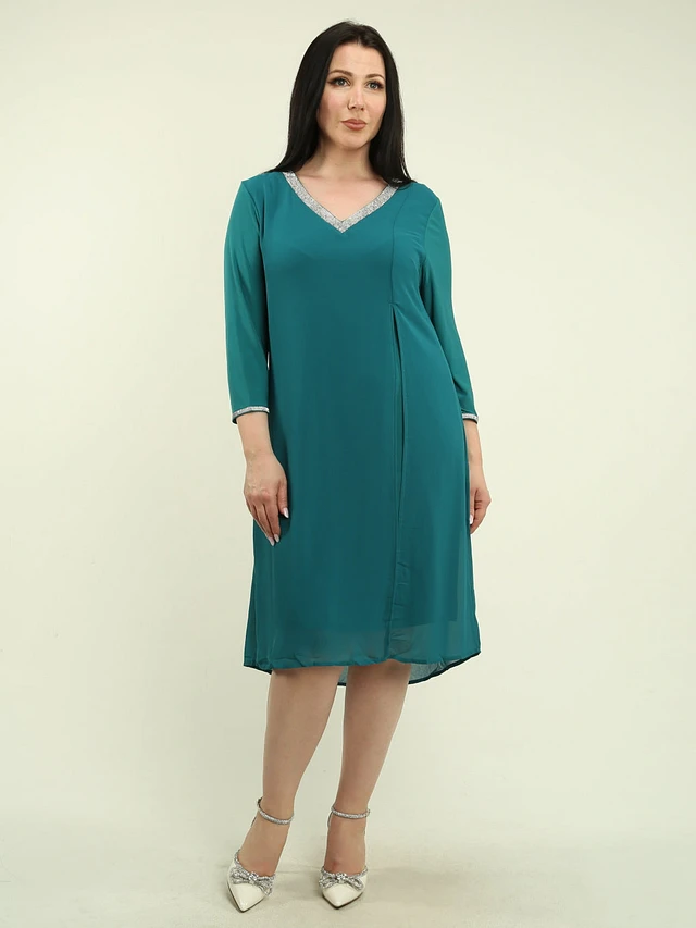 Rhinestone Trim Dress & Crystal Strand Earrings