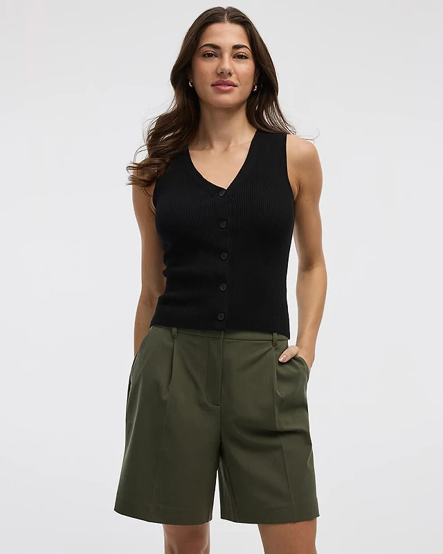 Sleeveless Lace-Trim V-Neck Ribbed Top