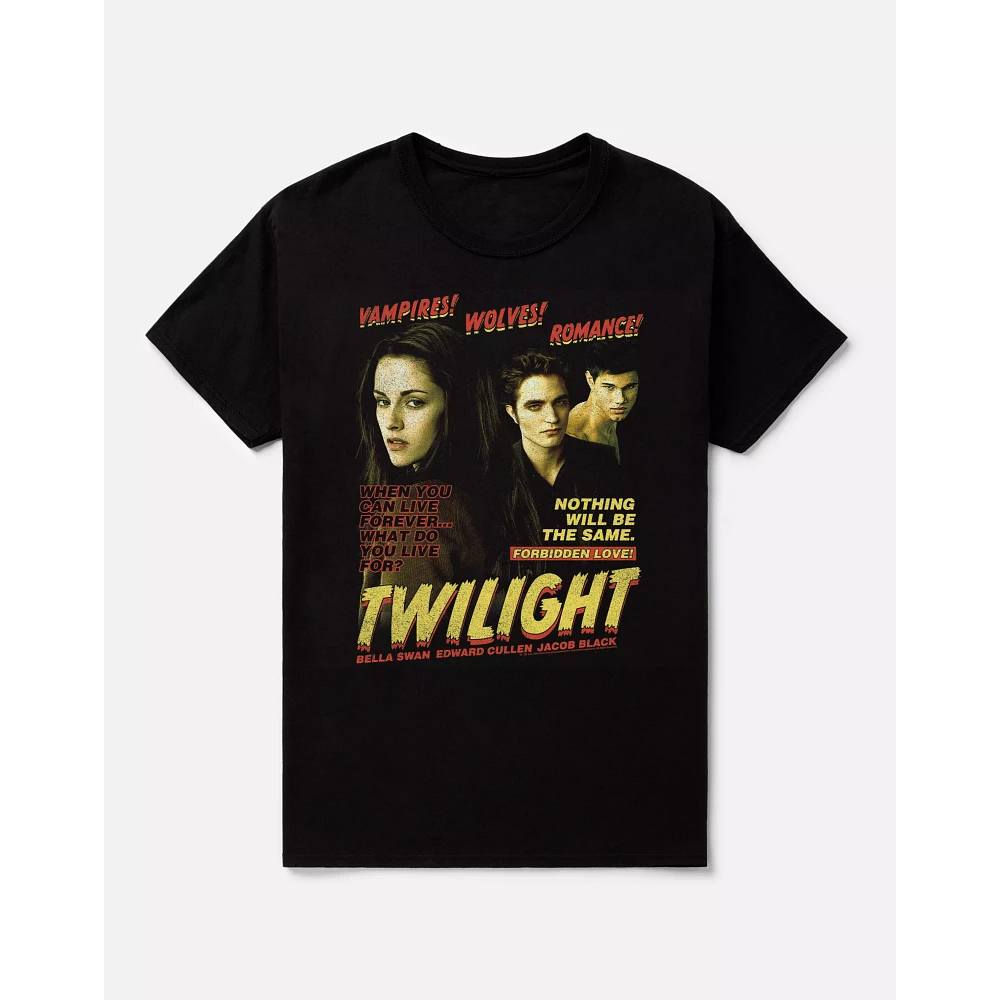 Vampires, Werewolves, Romance, oh my! Show off you're a hardcore fan of the Twilight series by adding this officially licensed tee to your collection. Featuring the trio of Jacob, Edward, and Bella on the front this tee is a must-have for fans of the series.