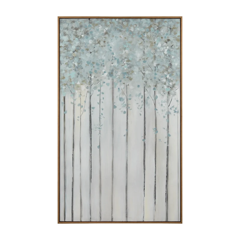 The Vertical Trees Oil Painting Canvas captures the beauty of nature with its gentle depiction of trees in calming blues and earthy tones. This inviting artwork brings a touch of serenity and warmth to your space, making it a lovely addition to your home decor. Perfect for any wall.