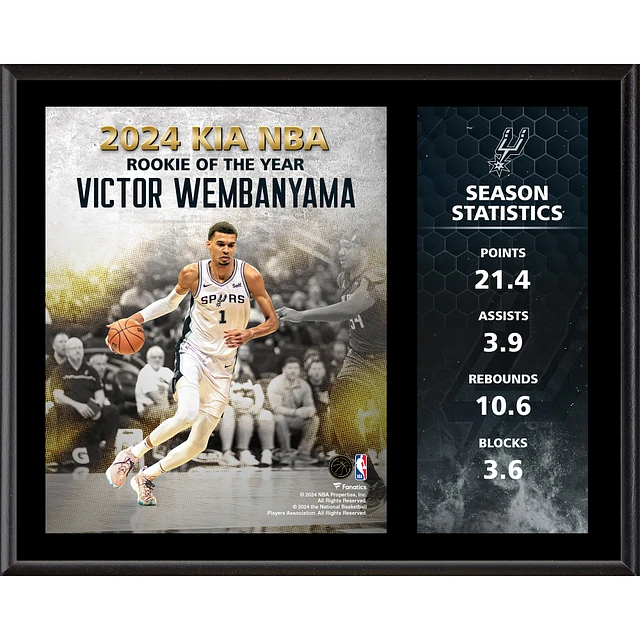 Victor Wembanyama San Antonio Spurs 12"x 15" 2024 NBA Rookie of the Year Sublimated Plaque