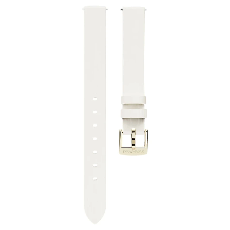 Watch strap, 12 mm (0.47") width, Leather, White, Champagne gold-tone finish by SWAROVSKI