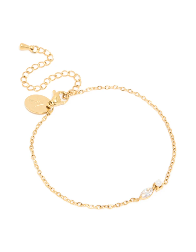Celebrate your birth month in style with this Waterproof Gold Plated Stainless Steel June Cubic Zirconia Birthstone Bracelet. This stunning bracelet combines a sleek, durable stainless steel base with a luxurious gold plating, making it as practical as it is beautiful. Featuring dazzling cubic zirconia crystals representing June’s birthstone, this bracelet is perfect for layering or wearing solo for a chic, minimalist look. Whether you're dressing up for a night out or adding a touch of shimmer to your everyday outfit, it’s versatile enough to complement anything from casual jeans and a tee to a flowy dress or tailored blazer. Its waterproof design means it’s ready to take on your day, whether you're swimming, sweating, or showering. Treat yourself or surprise someone special born in June with this thoughtful and stylish gift! Colour: Gold, Clear Dimensions: Length: 15.5 cm Waterproof/Resistant: Waterproof pieces from this collection are crafted from stainless steel, meaning they're sweat, swim and shower proof!