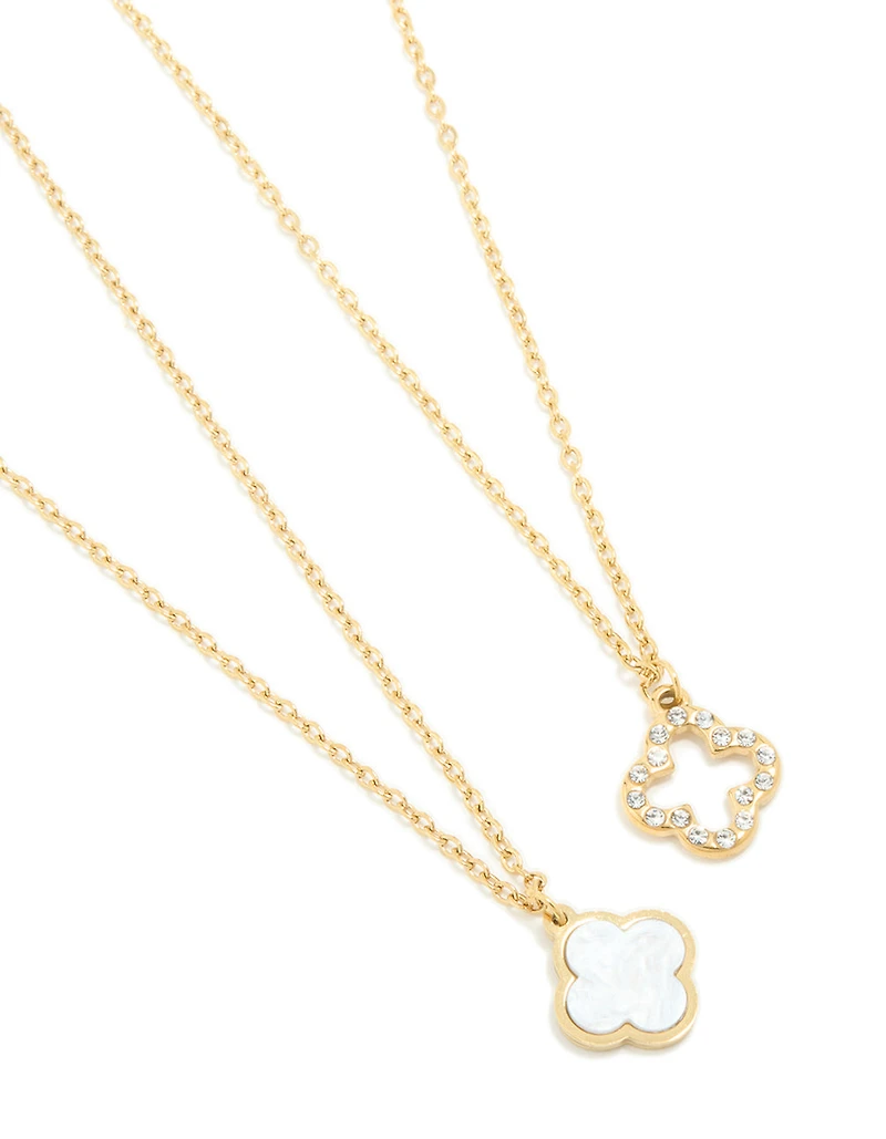 Waterproof Gold Plated Stainless Steel Shell Flower Necklaces 2 Pack