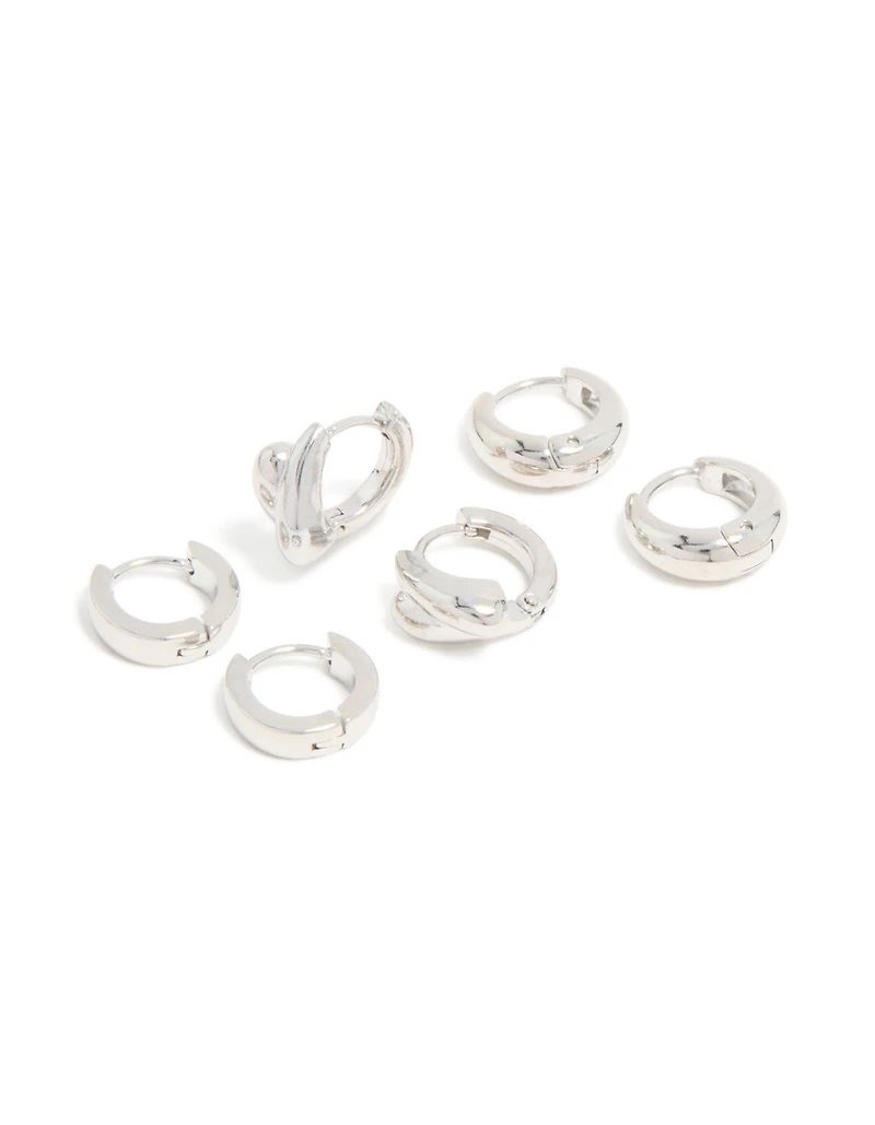 Waterproof Stainless Steel Chunky Huggie Earrings 3-Pack