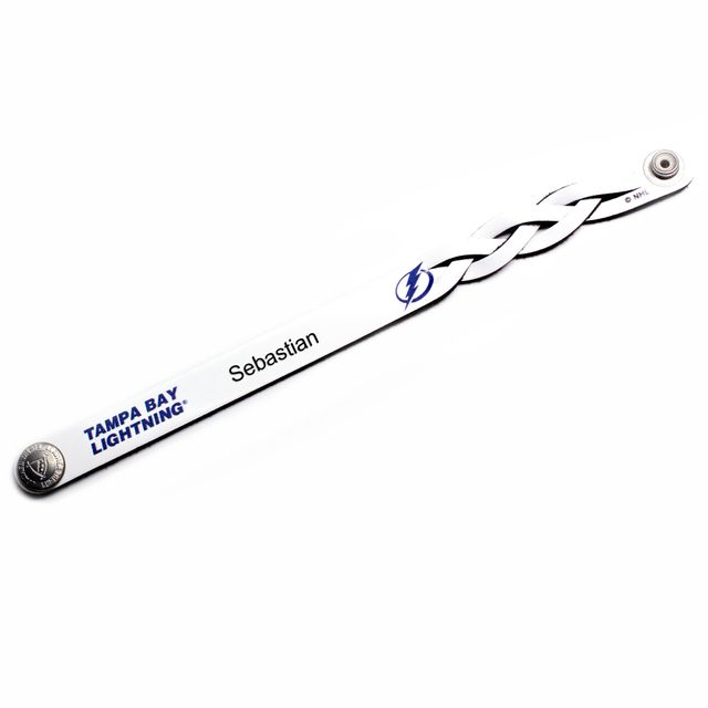 White Tampa Bay Lightning Personalized Leather Single Braid Bracelet