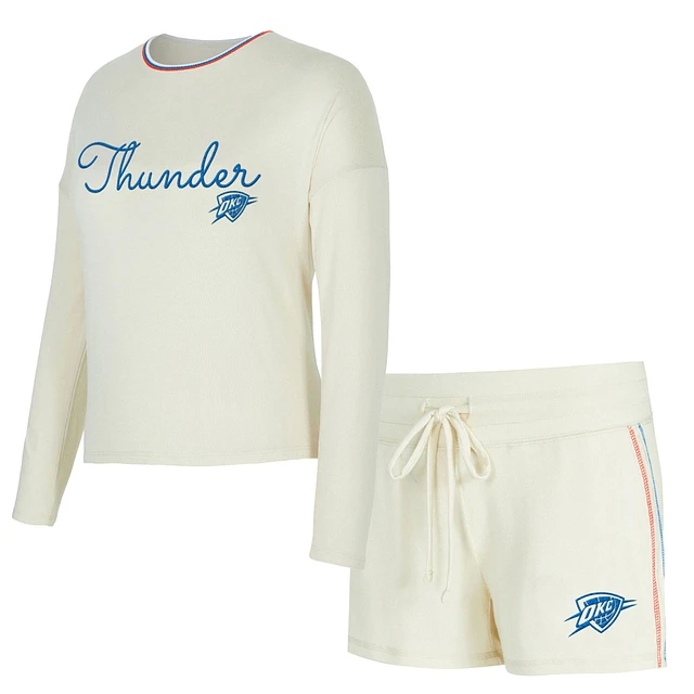 Women's Concepts Sport Cream Oklahoma City Thunder Kaki Hacci Knit Long Sleeve T-Shirt & Shorts Set