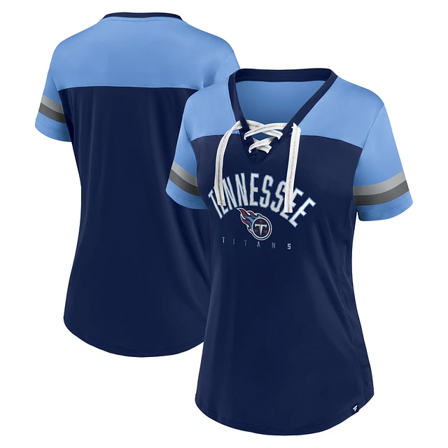 Women's Fanatics Navy/Light Blue Tennessee Titans Blitz & Glam Lace-Up V-Neck Jersey T-Shirt