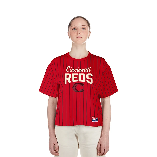 Women's New Era Red Cincinnati Reds City Connect Multiplier Pinstripe Cropped T-Shirt