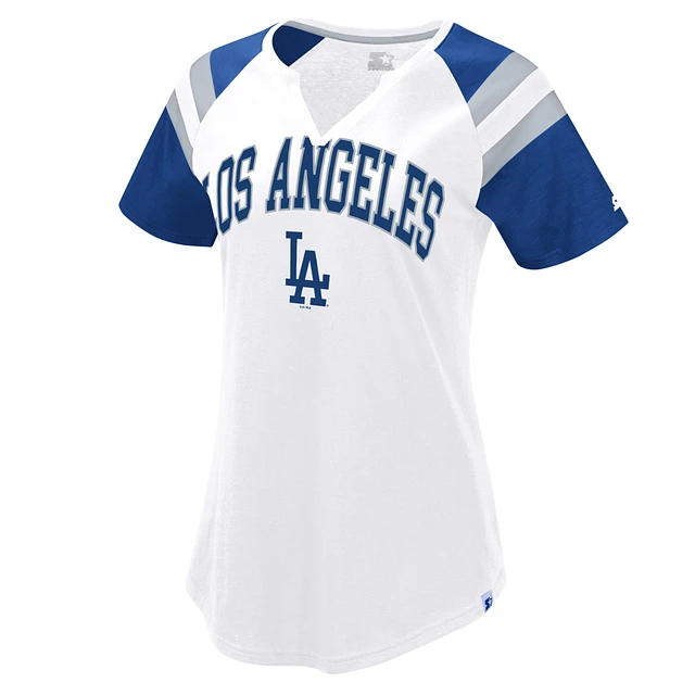 Women's Starter White/Royal Los Angeles Dodgers Game On Notch Neck Raglan T-Shirt