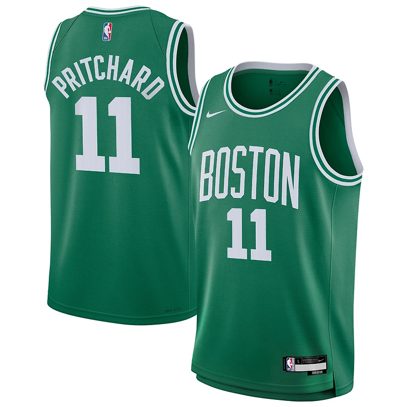 When the Boston Celtics hit the court, your youngster will be ready to watch Payton Pritchard lead the team to victory when they have this Swingman jersey from Nike. With a bold Icon Edition build and Dri-FIT technology, this jersey lets them show support in comfort with an authentic on-court design. The double-knit fabric with mesh texture and rubberized, heat-sealed team graphics, player name, and number will have your kiddo feeling like Payton Pritchard on the hardwood.