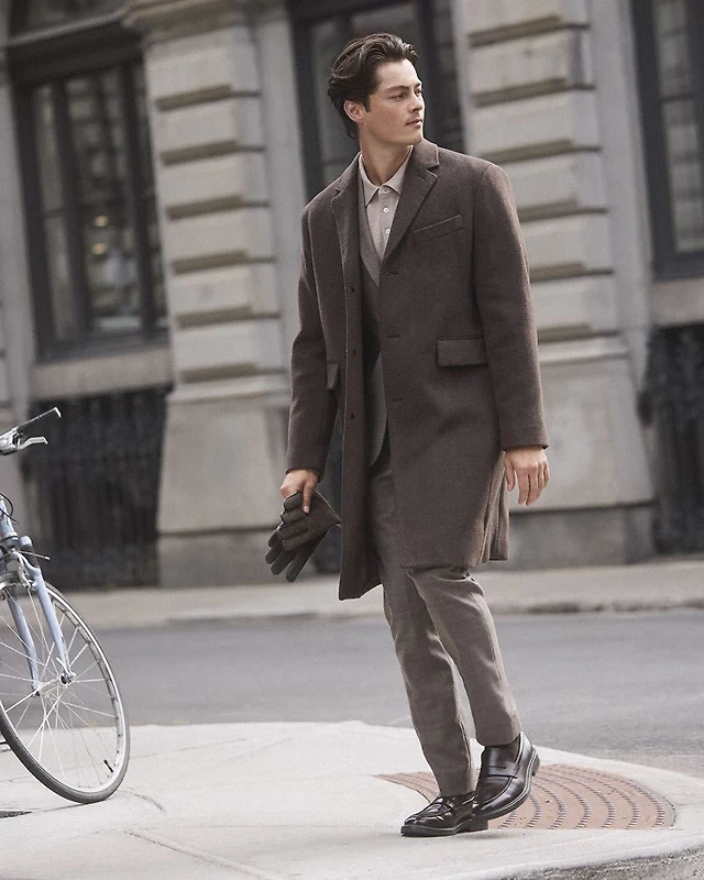 Classic Herringbone Mackintosh Coat with Shirt Collar