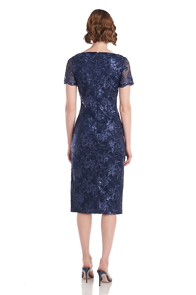 Elbow Sleeve Crochet Insert Midi Dress