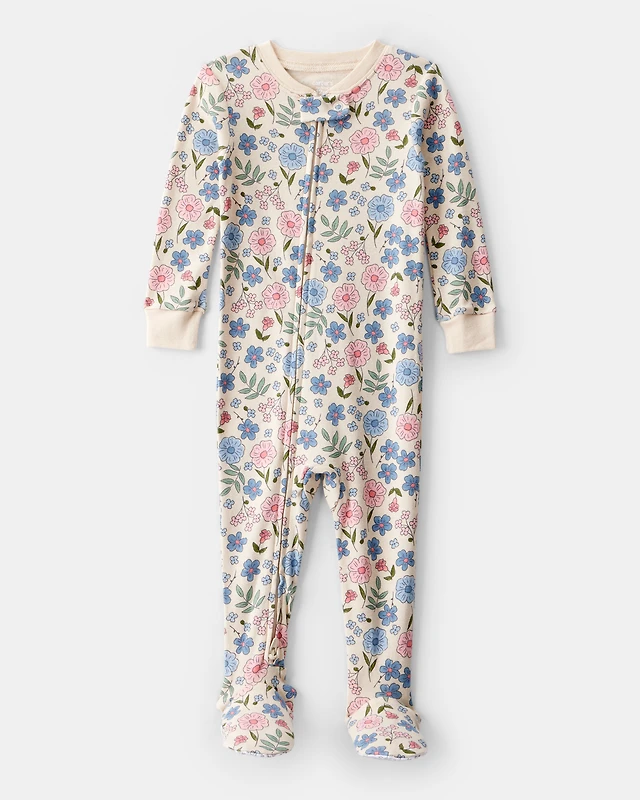 Baby Girl Floral 100% Cotton Snug Fit 2-Way Zip Footie 1-Piece Pyjamas - Ivory