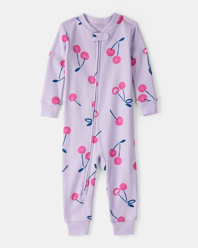 Baby Girl Cherry 100% Cotton Snug Fit 2-Way Zip Footie 1-Piece Pyjamass - Purple
