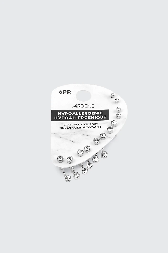 Ardene 6-Pack Hoop and Stud Earrings in Silver | Stainless Steel