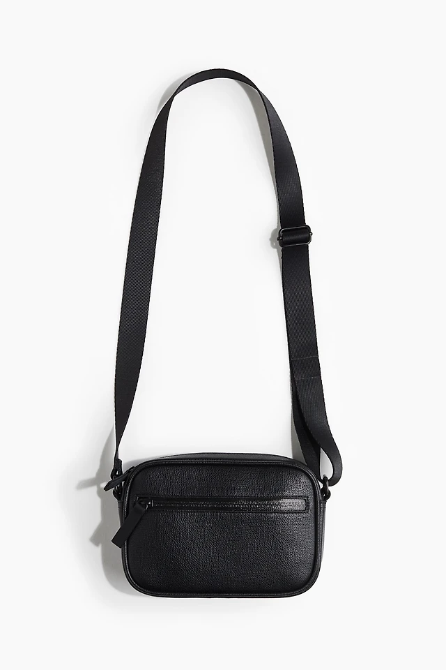 Ardene Two-Compartment Crossbody Bag in Black | Faux Leather/Polyester/Nylon