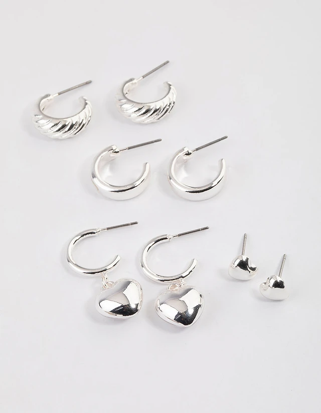 Gold Heart Diamante Earrings Pack