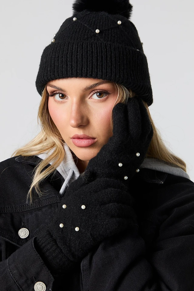 Dark Cherry Vegan Leather Woven Detail Gloves