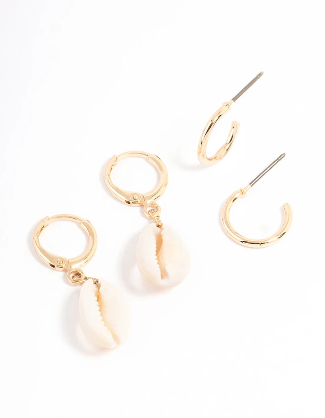 Gold Cowrie Shell & Hoop Earrings Pack