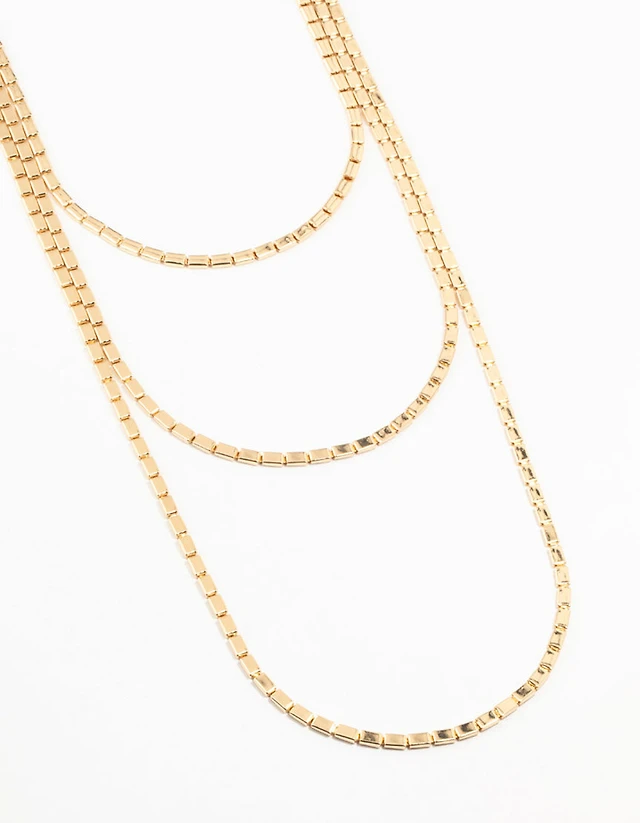 Gold Plated Diamante Curb Chain Layered Necklace
