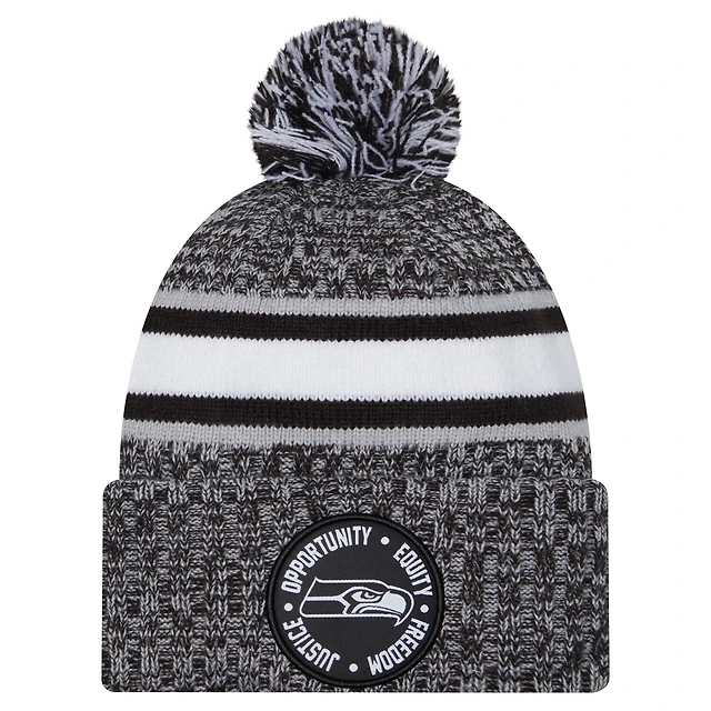 Men's New Era Black Seattle Seahawks Inspire Change Cuffed Knit Hat with Pom