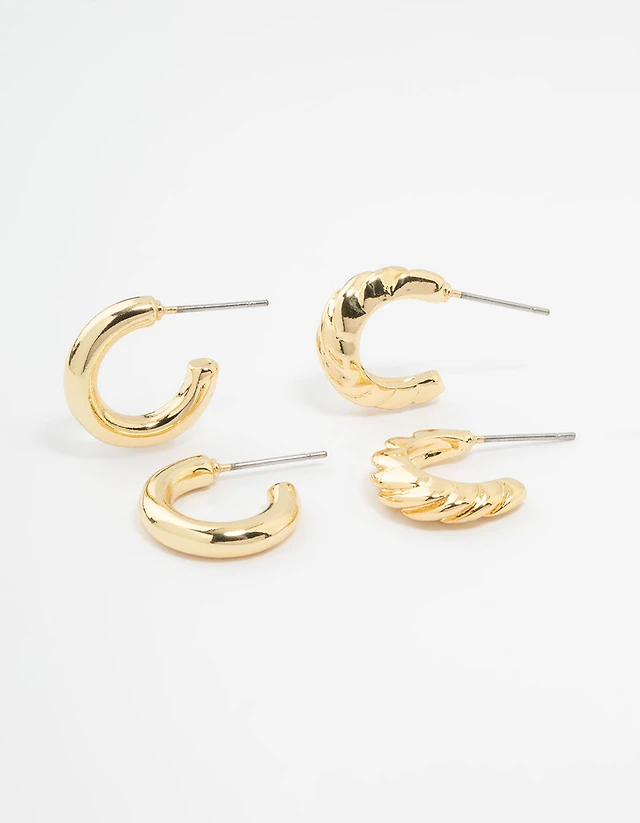 Gold Twisted & Round Hoop Earrings 2-Pack