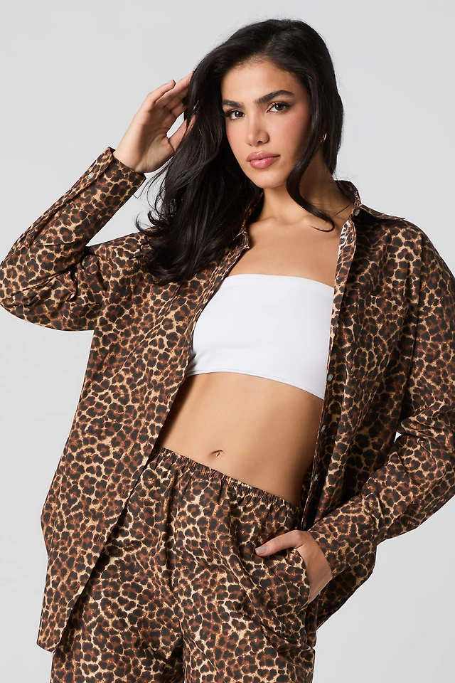 Graphic Flannel Button-Up Top