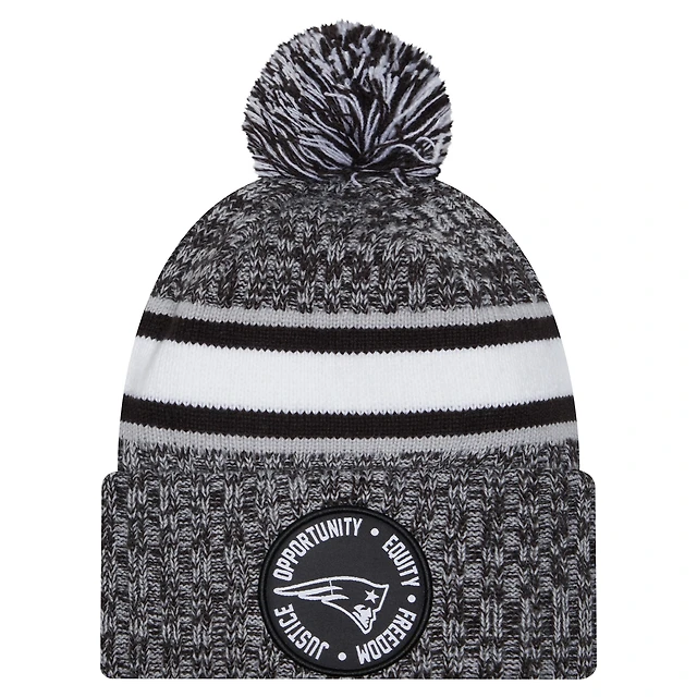 Men's New Era Black New England Patriots Inspire Change Cuffed Knit Hat with Pom