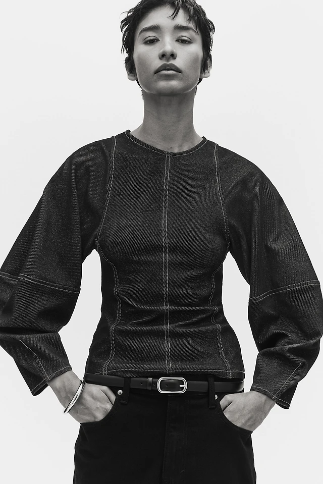 Scoop-Neck Loose Blouse with Raglan Sleeves