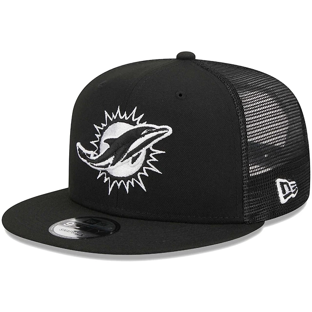 Men's New Era Black Miami Dolphins Main Trucker 9FIFTY Snapback Hat
