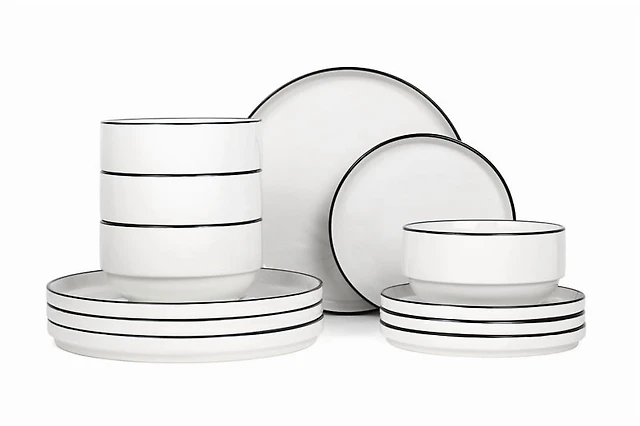Mainstays Black rim 12-Piece Stoneware Dinnerware Set
